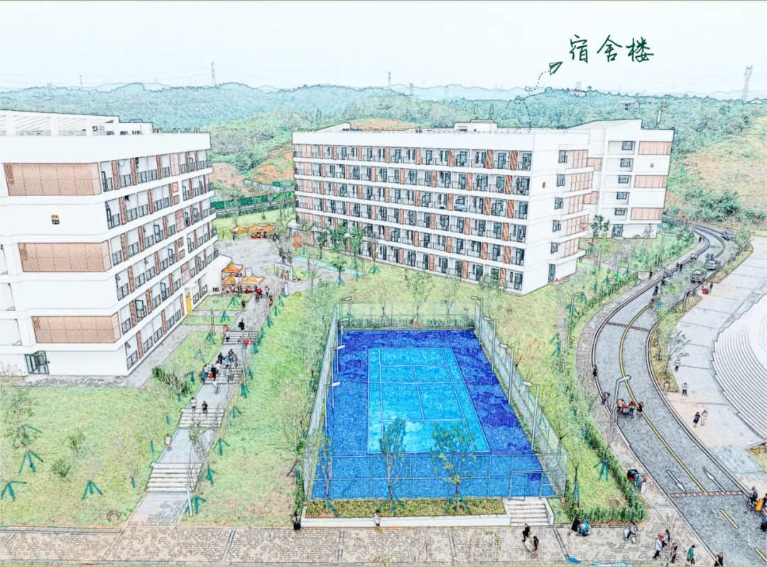 新校區(qū)依山傍水,以自然和科技為主要元素,在保留原始地形高差和水系的前提下,充分融入科技元素,配備了全覆蓋式智慧校園應(yīng)用系統(tǒng),并為師生配備了空調(diào)、洗衣機等配套齊全的“星級”宿舍,引入了先進(jìn)食堂設(shè)施設(shè)備、專業(yè)化物業(yè)管理團隊和知名餐飲商業(yè)品牌,為師生打造方便舒適的學(xué)習(xí)和生活環(huán)境。
