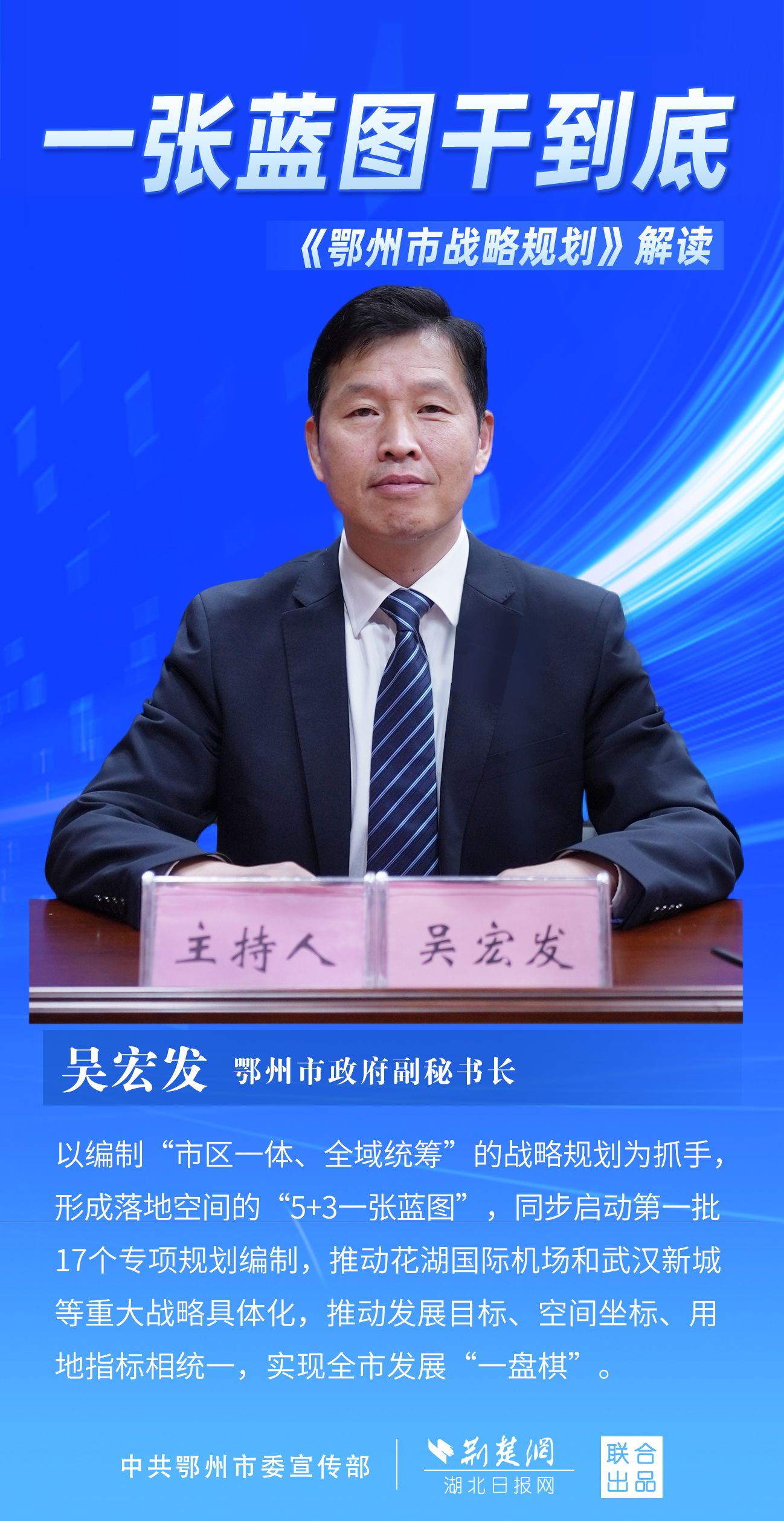 荊楚網(wǎng)(湖北日?qǐng)?bào)網(wǎng))訊(記者 劉璐、金康 通訊員 胡彥)11月7日上午,鄂州市召開新聞發(fā)布會(huì),宣布《鄂州市戰(zhàn)略規(guī)劃》即將印發(fā)實(shí)施。市委副秘書長(zhǎng)、市委政研室主任游惠民透露,從機(jī)制優(yōu)化、指標(biāo)考核、項(xiàng)目實(shí)施等方面確保規(guī)劃制度有依據(jù)、成效可考核、實(shí)施有抓手。具體如何落實(shí)落地?讓我們用一組海報(bào)解讀《鄂州市戰(zhàn)略規(guī)劃》。