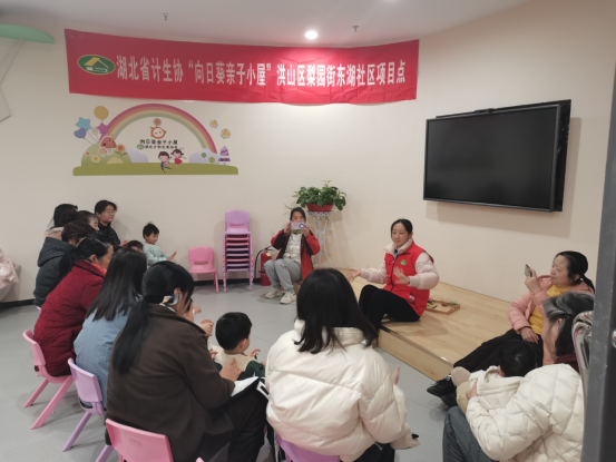 12月26日上午9點,湖北省計劃生育協(xié)會洪山區(qū)梨園街東湖社區(qū)向日葵親子小屋項目點的親子早教課程如期開展。