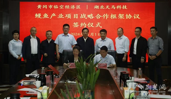 2024年11月1日,產業(yè)鏈領導工作小組趕赴福建與天馬科技集團洽談合作,并順利簽訂戰(zhàn)略合作協(xié)議。根據協(xié)議,天馬科技集團將在未來三至五年內在黃岡繼續(xù)擴大養(yǎng)殖規(guī)模,在現有基礎上擴大一倍,屆時在黃岡總投資將達到20億元,養(yǎng)殖面積超過兩千畝,年產鰻魚兩萬噸。同時,新建一家烤鰻加工廠,并積極對接花湖機場,讓活鰻直接上飛機出口。