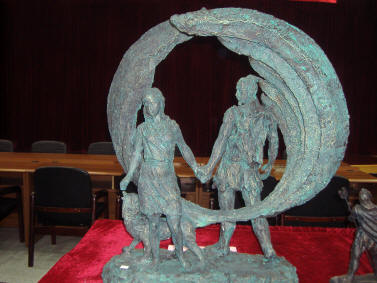 根據(jù)神話故事再創(chuàng)作的“大禹降生”、“乘車檢閱九鼎”、“三過家門而不入”等12件雕塑作品,體現(xiàn)了“原始、粗獷、神秘、浪漫和美好”的創(chuàng)作要求,特別是園區(qū)內(nèi)輔以綠化帶和小徑,能達(dá)到曲徑通幽的效果。