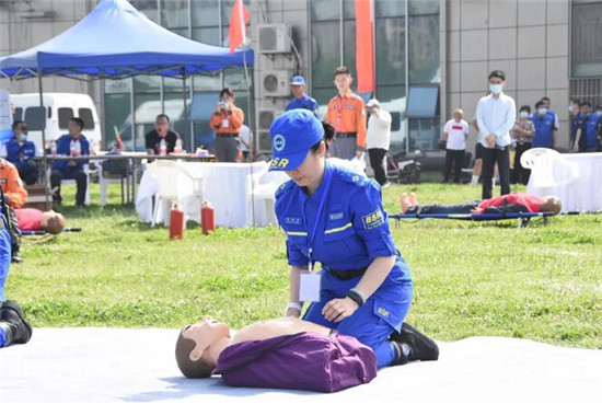 藍(lán)天救援隊(duì)員展示心肺復(fù)蘇技術(shù)