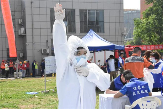 消防救援隊(duì)員進(jìn)入現(xiàn)場(chǎng)“滅火”江岸區(qū)各街道及百步亭社區(qū)17支代表隊(duì),參加了應(yīng)急常識(shí)答題、疫情防控“一穿三戴”、手提滅火器往返接力跑、模擬緊急救治傷員等應(yīng)急技能比武。