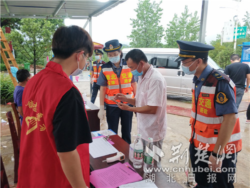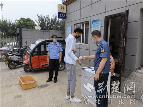 “大娘,請戴好口罩,我來幫您測下體溫?,F(xiàn)在疫情有擴(kuò)散趨勢,千萬要做好防護(hù)?!?月6日,漢十支隊(duì)路政員陳紅濤一邊向居民宣傳防疫知識,一邊熟練地替大家測量體溫。