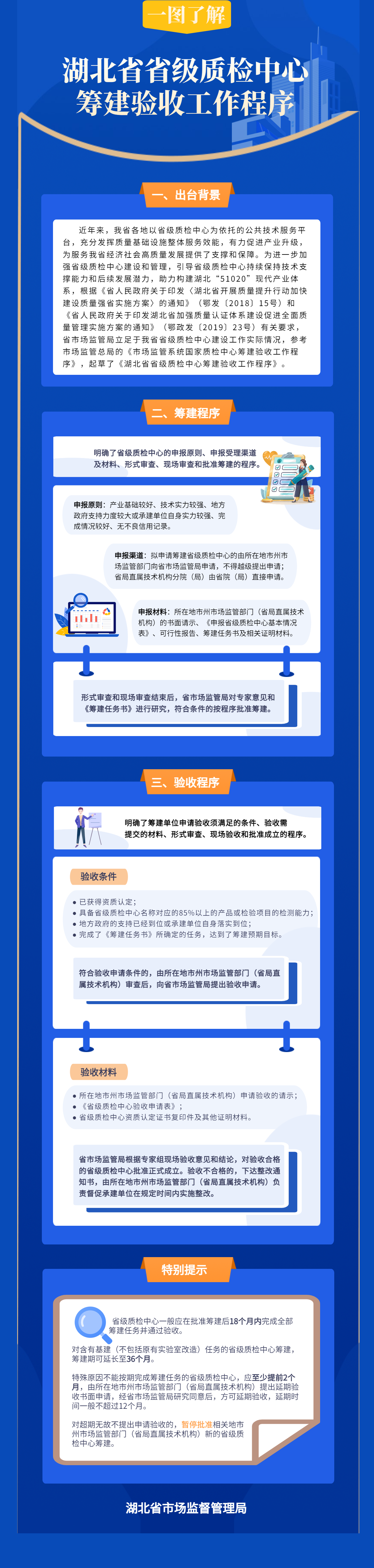 為進(jìn)一步加強(qiáng)省級(jí)質(zhì)檢中心建設(shè)和管理,引導(dǎo)省級(jí)質(zhì)檢中心持續(xù)保持技術(shù)支撐能力和后續(xù)發(fā)展?jié)摿?,助力?gòu)建湖北“51020”現(xiàn)代產(chǎn)業(yè)體系,近日,湖北省市場(chǎng)監(jiān)管局立足于我省省級(jí)質(zhì)檢中心建設(shè)工作實(shí)際情況,起草了《湖北省省級(jí)質(zhì)檢中心籌建驗(yàn)收工作程序》。