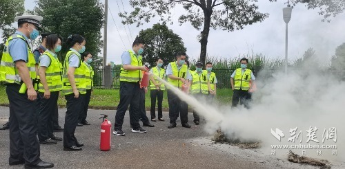“消防水帶要先鋪開(kāi)再連接,人拿穩(wěn)后再開(kāi)栓…”為保證演練活動(dòng)有序開(kāi)展、取得實(shí)效,演練開(kāi)始前,武英黨總支書(shū)記王曉華做了演練動(dòng)員。消防專(zhuān)業(yè)人員為“警路企”三方參演人員詳細(xì)講解自救逃生技巧和先期預(yù)判處置方法,對(duì)消防栓水帶連接、滅火器適用范圍及使用進(jìn)行實(shí)操培訓(xùn)。
