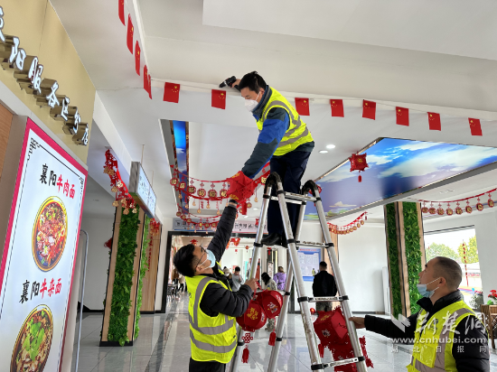 據(jù)了解,春運(yùn)開(kāi)始前,湖北高速各個(gè)服務(wù)區(qū)、收費(fèi)站就陸續(xù)在貼窗花、掛彩旗、插國(guó)旗,貼心籌備春運(yùn)物資,營(yíng)造現(xiàn)場(chǎng)氛圍。
