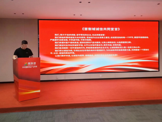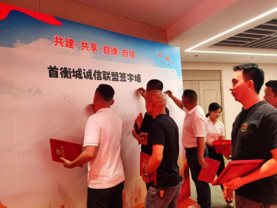 誠信聯(lián)盟啟動儀式活動現(xiàn)場,宣讀了《首衡城誠信聯(lián)盟實施方案》,通過了《首衡城誠信聯(lián)盟章程》《首衡城誠信共同宣言》,入駐商戶簽訂了《誠信經(jīng)營承諾書》,參會領導為獲證商戶頒發(fā)了《首衡城誠信聯(lián)盟入駐企業(yè)證書》。