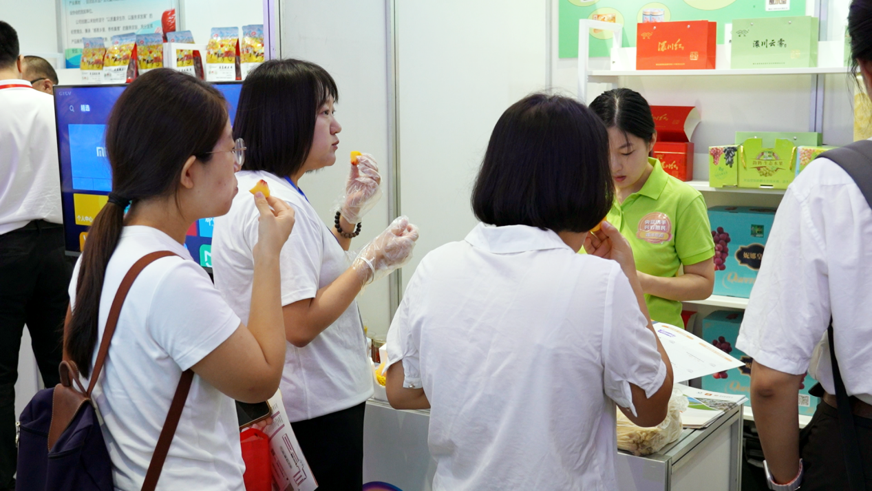 在熱鬧非凡的展廳里,孝昌太子米、妮娜皇后葡萄、桃膠銀耳等具有孝昌地域特色的各種農(nóng)副產(chǎn)品擺在了顯眼的位置,吸引了絡(luò)繹不絕的游客和滿懷期待的客商。咬上一口脆爽多汁的大黃桃,品一顆香甜四溢的葡萄,大家現(xiàn)場品嘗后紛紛詢價(jià)購買。