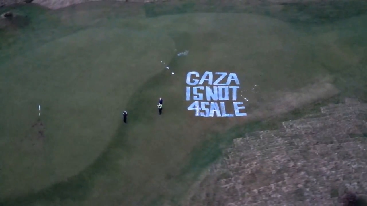 蘇格蘭警方說,警方在8日凌晨4時(shí)40分接到報(bào)案,并展開調(diào)查。警方發(fā)現(xiàn),有人用紅色噴漆破壞了度假村會(huì)所,草坪上還涂上了“加沙不容出售”字樣。