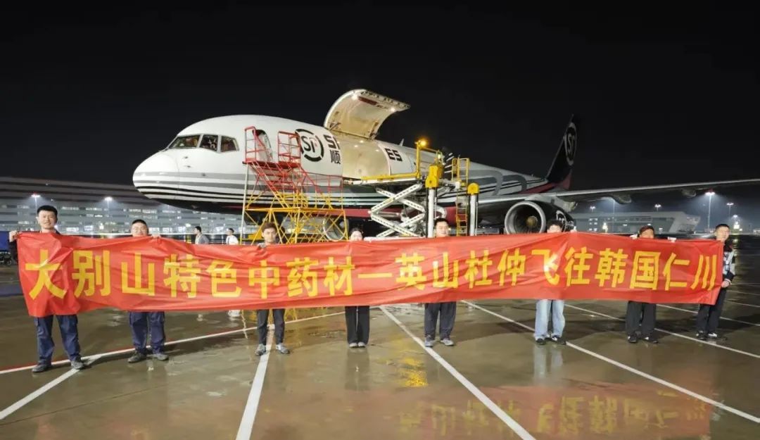 卸貨、稱重、貼標、安檢、打板、上車,一氣呵成……5月15日下午,86箱1.37噸英山杜仲,在黃岡城市貨站完成預報關、稱重等流程后,運往花湖國際機場,搭乘次日5時11分飛往韓國仁川的順豐航空O3141航班,僅3小時19分后便抵達目的地。