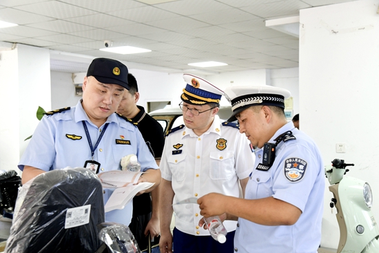 期間,聯合檢查組走訪了黃石城區9家電動車銷售門店,聚焦流通環節的關鍵風險點,重點核查了經營資質的合法合規性、在售車輛的質量合格證明、是否存在非法改裝原廠電氣配件或違規拆改限速裝置等行為。同時,檢查組對蓄電池及充電器的電氣安全性能、車輛限速功能、整車質量以及關鍵材料的阻燃性能進行了嚴格檢查,并細致排查了銷售場所的消防安全狀況。