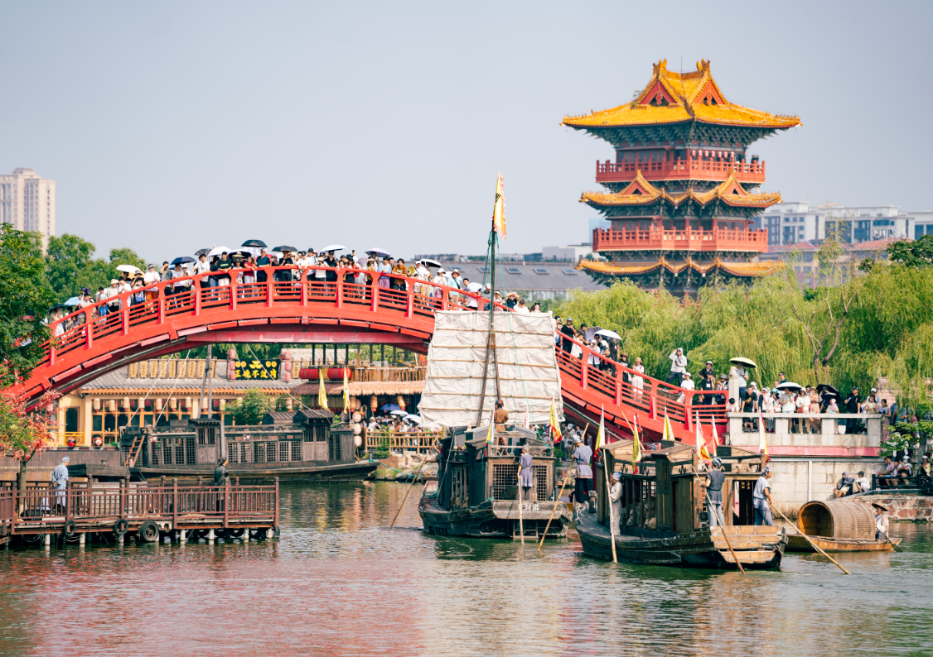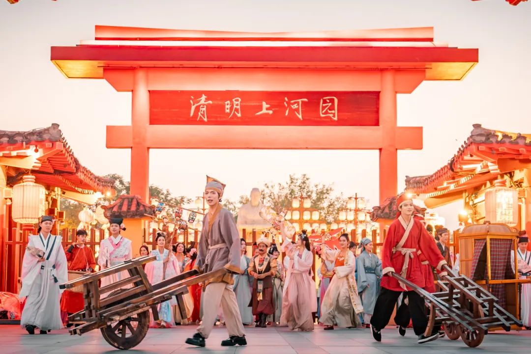 《大宋不夜城·開市迎賓》帶給你超具儀式感的夏天,蘇東坡和張擇端穿越而來,攜NPC出動,入園前便開始互動迎接,人間煙火氣十足!