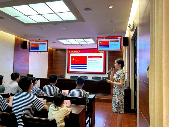活動(dòng)伊始,辛亥革命博物院的老師為孩子們介紹了中國(guó)人民解放軍的光輝發(fā)展歷程、各種軍旗的設(shè)計(jì)含義及八一建軍節(jié)的由來(lái)和意義。隨后特邀武昌職業(yè)學(xué)院李亦偉教授、王浩然老師和朱世康老師進(jìn)行現(xiàn)場(chǎng)教學(xué)。李教授為孩子們講授了《捍衛(wèi)藍(lán)色疆域 爭(zhēng)做強(qiáng)國(guó)少年》的專題課程,王老師和朱老師則帶來(lái)了軍體特色科目——旗語(yǔ),孩子們認(rèn)真學(xué)習(xí),全情投入?,F(xiàn)場(chǎng)還舉行了氣氛熱烈的國(guó)防知識(shí)競(jìng)答,大家專心聆聽(tīng),積極搶答問(wèn)題,現(xiàn)場(chǎng)氣氛熱烈而有序,表現(xiàn)優(yōu)異的小朋友獲評(píng)為“答題王”,并獲得了精美的獎(jiǎng)品。在互動(dòng)體驗(yàn)環(huán)節(jié),武昌職業(yè)學(xué)院楊洋隊(duì)長(zhǎng)為孩子們示范標(biāo)準(zhǔn)軍姿,并對(duì)孩子們進(jìn)行現(xiàn)場(chǎng)指導(dǎo)。隨后,孩子們以畫(huà)筆為媒,書(shū)寫(xiě)下對(duì)人民子弟兵最誠(chéng)摯的敬意與祝福。湖北木蘭花社會(huì)服務(wù)中心副理事長(zhǎng)熊英聯(lián)手漢繡指導(dǎo)老師田宸輝向辛亥革命博物院捐贈(zèng)了漢繡黨旗和書(shū)法作品,以筆墨禮贊奮斗精神。
