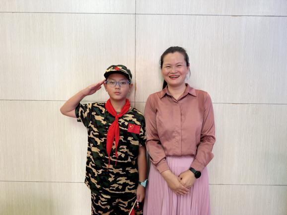 黃宜萌媽媽:“很榮幸能陪孩子參加軍事主題活動(dòng),看到孩子們認(rèn)真學(xué)軍姿、唱軍歌……特別欣慰!愛(ài)國(guó)教育從小抓起,我們每一代人都要銘記歷史,傳承紅色精神!”
