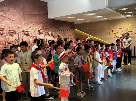 活動(dòng)尾聲,辛亥革命博物院小小講解員代表深情朗誦《少年中國(guó)說(shuō)》。全體學(xué)生齊聲高唱軍歌《強(qiáng)軍戰(zhàn)歌》,“聽(tīng)吧,新征程號(hào)角吹響,強(qiáng)軍目標(biāo)召喚在前方……”,雄壯的旋律在序廳久久回蕩,將現(xiàn)場(chǎng)氣氛推向高潮。