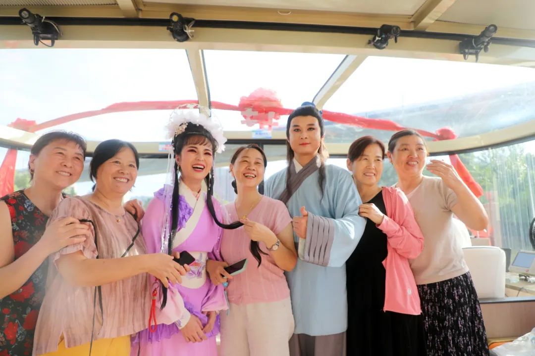 白天的游船活動(dòng)同樣精彩紛呈,游船項(xiàng)目特別設(shè)計(jì)了“非遺傳承”和“親子互動(dòng)”兩大主題航線。在非遺文化專場(chǎng)上,湖北省實(shí)驗(yàn)楚劇團(tuán)的藝術(shù)家們?yōu)橛慰统尸F(xiàn)了一場(chǎng)精彩紛呈的視聽盛宴。演員們身著華美戲服,在游船舞臺(tái)上傾情演繹《槐蔭緣》《孝愛之戀》《問槐花》等經(jīng)典楚劇選段,讓觀眾在槳聲燈影間領(lǐng)略傳統(tǒng)文化的獨(dú)特魅力。另有2025年湖北戲劇“牡丹花獎(jiǎng)”獲得者周瑩獻(xiàn)唱的經(jīng)典選段,與游客進(jìn)行面對(duì)面的藝術(shù)交流。屆時(shí),游客不僅能近距離欣賞到她精湛的水袖功夫和婉轉(zhuǎn)動(dòng)人的唱腔,還能參與互動(dòng)環(huán)節(jié),親身感受楚劇藝術(shù)的魅力。