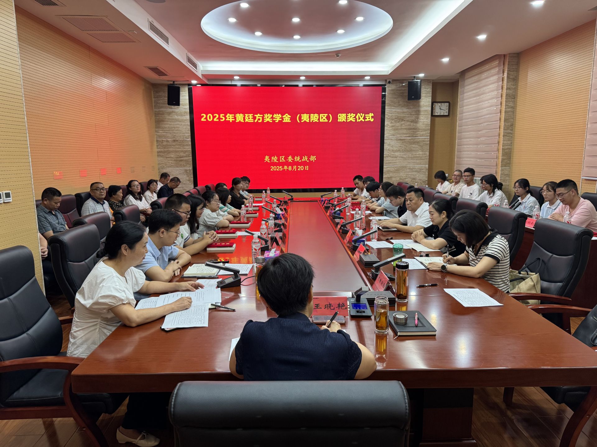 8月20日,湖北省黃廷方獎學(xué)金頒獎儀式視頻會議結(jié)束后,夷陵區(qū)緊接著舉行2025年黃廷方獎學(xué)金頒獎儀式,為20名品學(xué)兼優(yōu)、家庭經(jīng)濟(jì)困難的高三畢業(yè)生每人發(fā)放5000元獎學(xué)金,總計(jì)10萬元,助力他們圓夢大學(xué)。區(qū)委常委、區(qū)委政法委書記、區(qū)委統(tǒng)戰(zhàn)部部長王曉艷出席儀式,區(qū)委統(tǒng)戰(zhàn)部、區(qū)僑聯(lián)、團(tuán)區(qū)委、區(qū)婦聯(lián)、區(qū)教育局及三峽高中負(fù)責(zé)人、獲獎學(xué)生及家長代表齊聚一堂,共同見證愛心傳遞與青春夢想的交融。