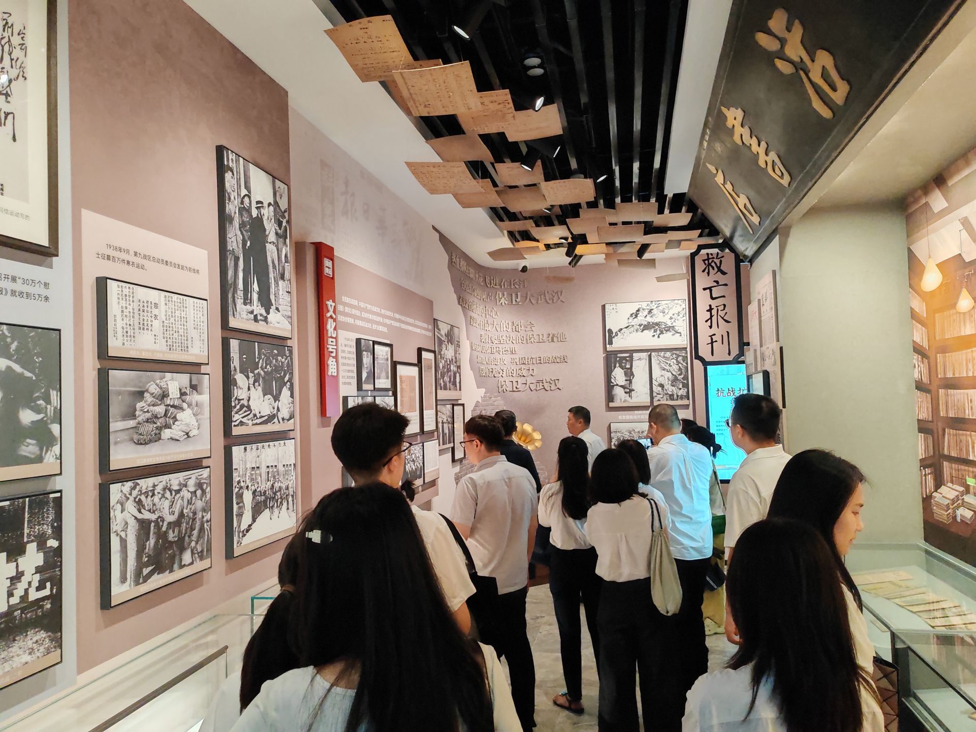 “生活書店” 場景則以漢口分店為原型,復刻藍底白字的 “交通路63號” 門牌與1938年初版《魯迅全集》書脊,展柜內的抗戰(zhàn)書籍搭配互動抽拉裝置、多媒體查詢屏,方便觀眾查閱當年武漢發(fā)行的報刊雜志細節(jié)。展覽尾廳的 “V 字勝利墻”,匯集1945年各國報刊關于日本投降的新聞標題與多語言 “日本投降” 字樣,成為觀眾打卡留念、感悟勝利意義的熱門點位。