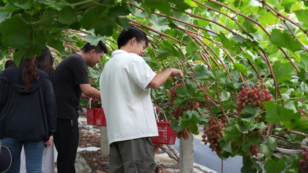 果園旁的交易中心里,嘗鮮、采購(gòu)的游客絡(luò)繹不絕,新鮮葡萄成了這個(gè)初秋最搶手的“甜禮”。