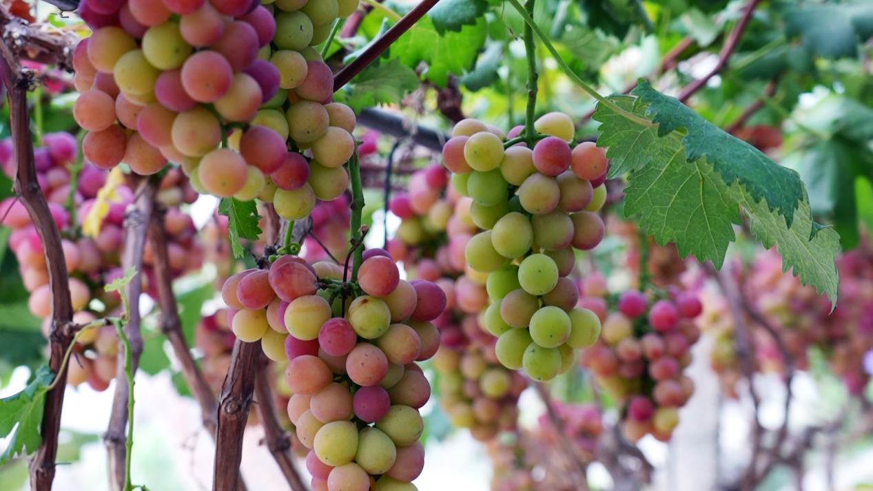 清晨的陽(yáng)光穿透葡萄藤葉,灑下斑駁光影。園區(qū)內(nèi),游客們手提果籃穿梭在藤蔓之間,指尖輕觸飽滿的果實(shí),歡聲笑語(yǔ)在田間隨風(fēng)飄蕩。“園區(qū)特別大,葡萄品種也多,‘妮娜皇后’甜得很,我準(zhǔn)備多帶些回去給同事、朋友和家人嘗嘗?!庇慰蛷埶尖贿吿暨x葡萄,一邊笑著說(shuō)道。