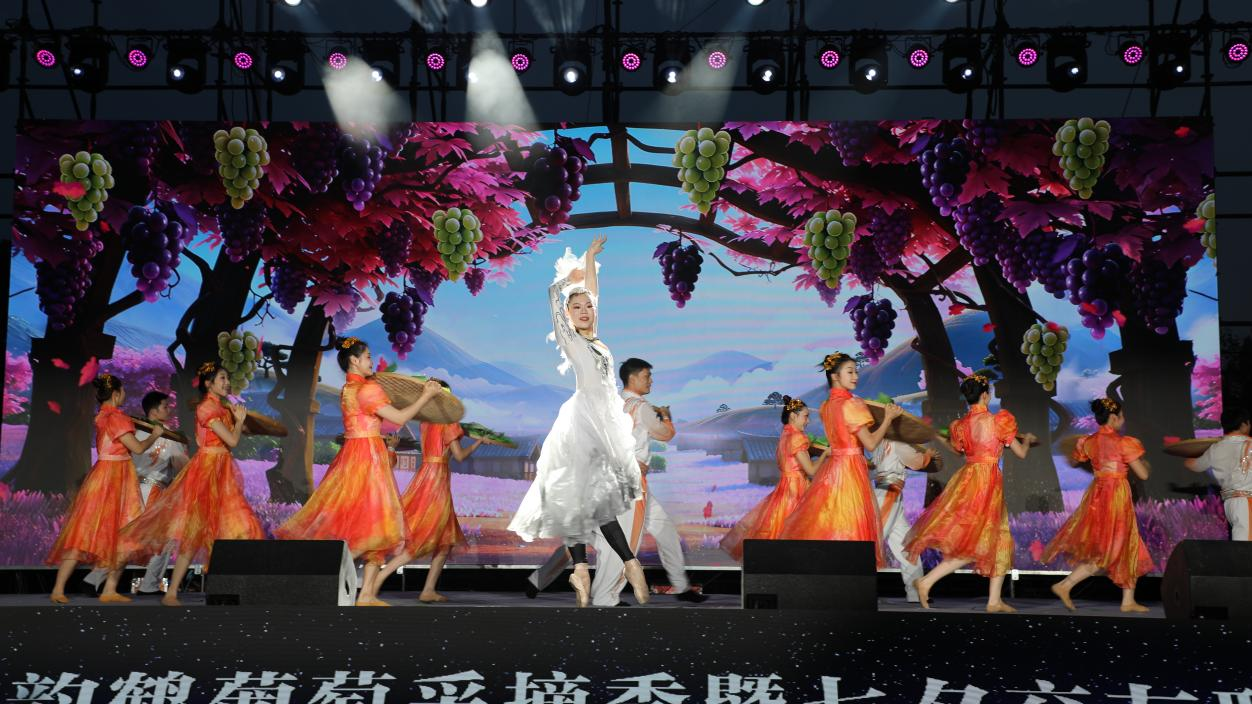 夜幕降臨,采摘季主題晚會(huì)如期上演。湖北省歌劇舞劇院帶來(lái)的《鶴舞云天?歡聚葡園》驚艷全場(chǎng),小品、魔術(shù)、抽獎(jiǎng)互動(dòng)環(huán)節(jié)接連登場(chǎng),歌唱家獻(xiàn)唱經(jīng)典曲目,現(xiàn)場(chǎng)氛圍熱烈。情景講述《仙鶴歸來(lái)是故鄉(xiāng)》更是生動(dòng)再現(xiàn)了黃灼初返鄉(xiāng)創(chuàng)業(yè)的艱辛與溫暖。