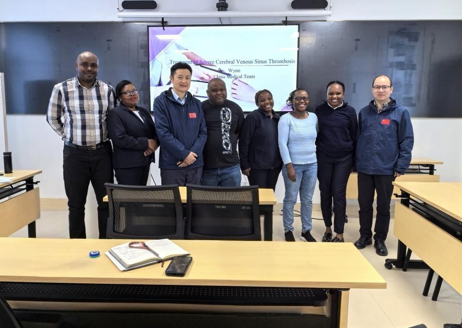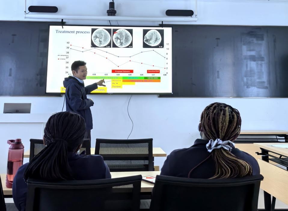 人民網(wǎng)約翰內(nèi)斯堡9月7日電 (記者鄒松)9月6日上午,中國(湖北)第19批援萊索托醫(yī)療隊(duì)在馬賽盧地區(qū)醫(yī)院開展醫(yī)學(xué)培訓(xùn)。醫(yī)療隊(duì)隊(duì)長(zhǎng)、主任醫(yī)師吳輝在該院教學(xué)培訓(xùn)樓會(huì)議室進(jìn)行題為《重癥產(chǎn)褥期腦靜脈竇血栓伴出血、腦疝患者救治過程分享》的學(xué)術(shù)講座。培訓(xùn)對(duì)象為馬賽盧地區(qū)醫(yī)院重癥監(jiān)護(hù)室非值班醫(yī)護(hù)人員,活動(dòng)獲得熱烈反響。
