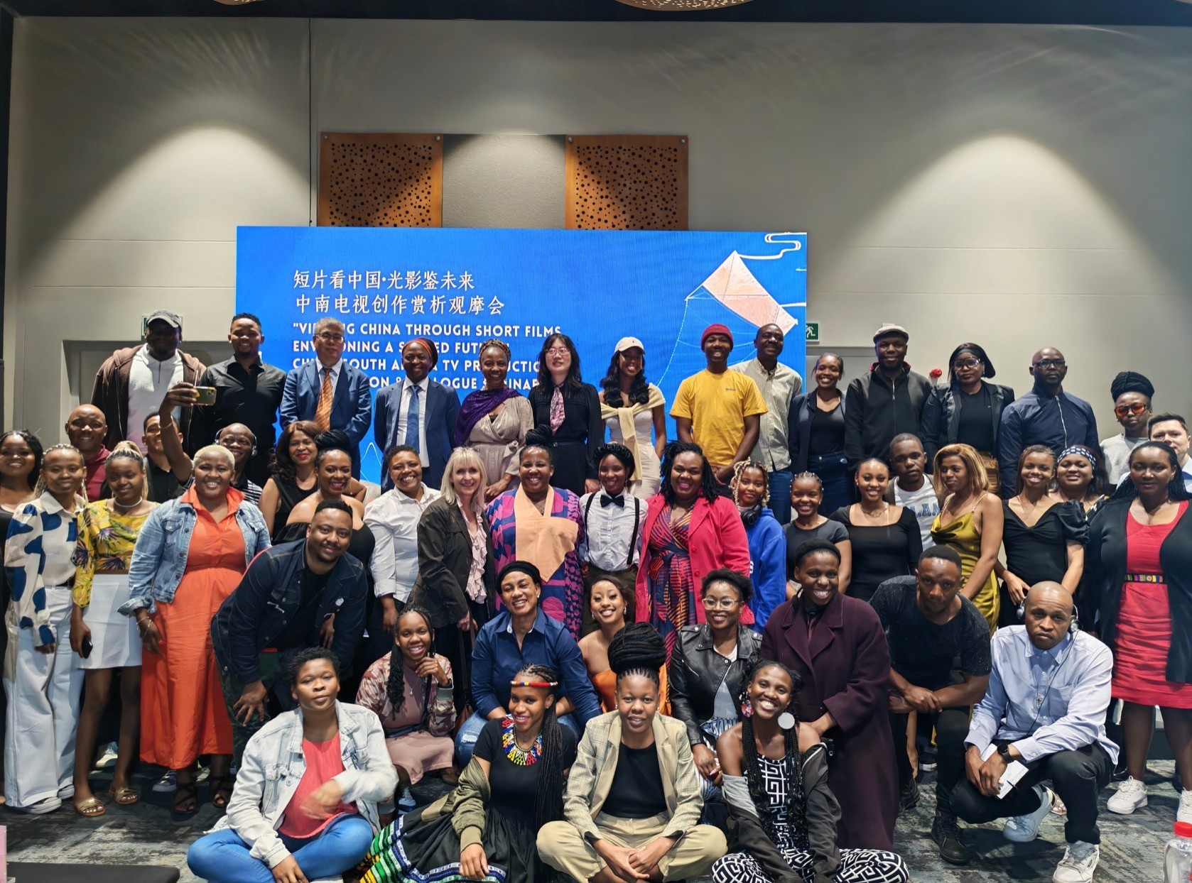 人民網(wǎng)約翰內(nèi)斯堡9月8日電 (記者戴楷然)6日,由中國(guó)文學(xué)藝術(shù)界聯(lián)合會(huì)、中國(guó)駐南非大使館指導(dǎo),中國(guó)電視藝術(shù)家協(xié)會(huì)、南非金磚國(guó)家電視臺(tái)、中國(guó)外文局西歐與非洲傳播中心共同主辦的“短片看中國(guó)·光影鑒未來(lái)”——中南電視創(chuàng)作賞析觀摩會(huì)在南非約翰內(nèi)斯堡舉辦,中國(guó)文聯(lián)黨組書(shū)記、副主席張政,中國(guó)駐南非大使館公使覃展鵬,南非著名藝術(shù)家杜·諾奎,南非金磚電視臺(tái)臺(tái)長(zhǎng)阿揚(yáng)達(dá)·霍洛及兩國(guó)文化藝術(shù)界人士近百人出席。