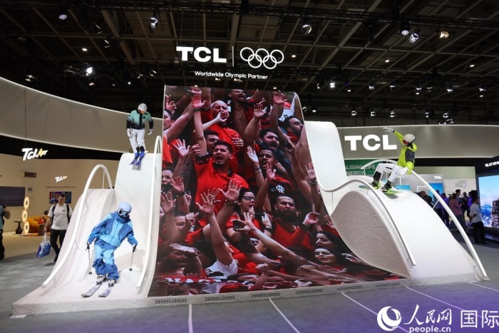 圖為T(mén)CL在柏林會(huì)展中心打造的冬奧主題展區(qū)。人民網(wǎng)記者 劉仲華攝