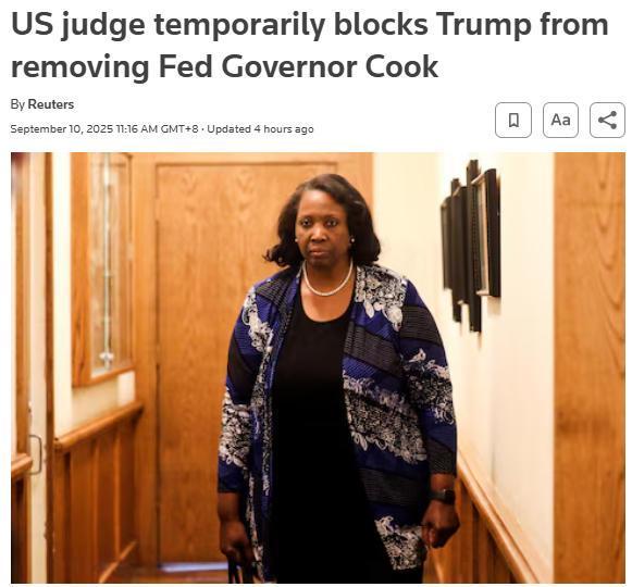 這一裁決阻止了美聯(lián)儲在庫克提起訴訟期間執(zhí)行解雇決定。庫克的律師阿貝·洛厄爾在一份聲明中表示:“這項裁決承認并重申了保護美聯(lián)儲免受非法政治干預(yù)的重要性。”
