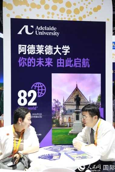 阿德萊德大學(xué)在澳大利亞國(guó)家館內(nèi)的展位。人民網(wǎng)記者 賈文婷攝