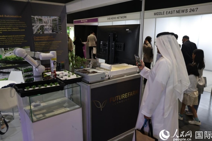 在展覽現(xiàn)場,多家中國企業(yè)展示的新產(chǎn)品和新技術(shù)受到中東客商歡迎。一家位于深圳的照明企業(yè)研發(fā)的LED燈光系統(tǒng),能夠通過調(diào)整光譜組合和光照強度,優(yōu)化農(nóng)作物的產(chǎn)量和質(zhì)量;另一家位于中國香港的企業(yè)帶來的全自動移栽和播種機械臂,能夠有效提高垂直農(nóng)場耕作效率,將智慧農(nóng)業(yè)里面引入其中。“中國在垂直農(nóng)業(yè)領(lǐng)域技術(shù)優(yōu)勢明顯,我們希望與中國企業(yè)開展更多合作?!卑⒙?lián)酋無土栽培農(nóng)場經(jīng)理阿姆賈德·奧馬爾對記者說。