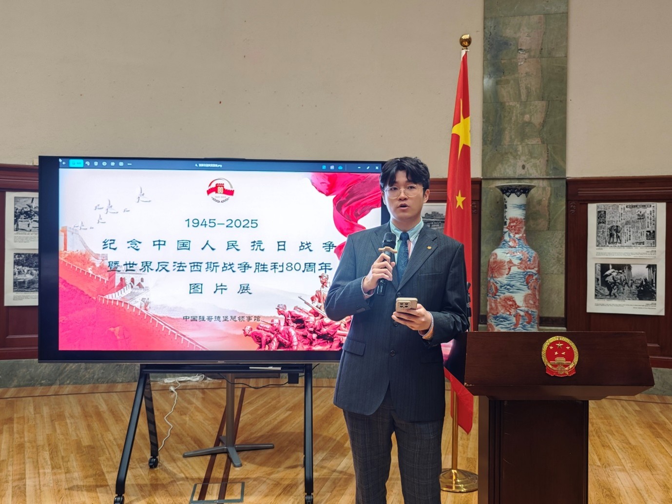 人民網(wǎng)斯德哥爾摩9月12日電 (記者殷淼)9月12日,中國駐哥德堡總領(lǐng)館隆重舉辦紀(jì)念中國人民抗日戰(zhàn)爭暨世界反法西斯戰(zhàn)爭勝利80周年圖片展和招待會。領(lǐng)區(qū)僑胞、留學(xué)生和社會各界人士300余人出席,中國駐哥德堡總領(lǐng)事楊培棟現(xiàn)場致辭。