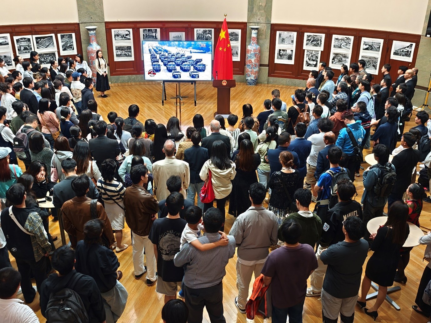 隨后,來賓們集體觀看圖片展,回顧日本法西斯侵華的累累罪行,以及這場全民族眾志成城、艱苦卓絕的偉大勝利。大家并共同觀看了“9·3”閱兵精彩片段,對剛毅威武的人民之師,集中亮相的新武器新裝備贊不絕口,表示新時代人民軍隊完全有信心、有能力維護(hù)國家獨立自由,維護(hù)世界和平安寧。