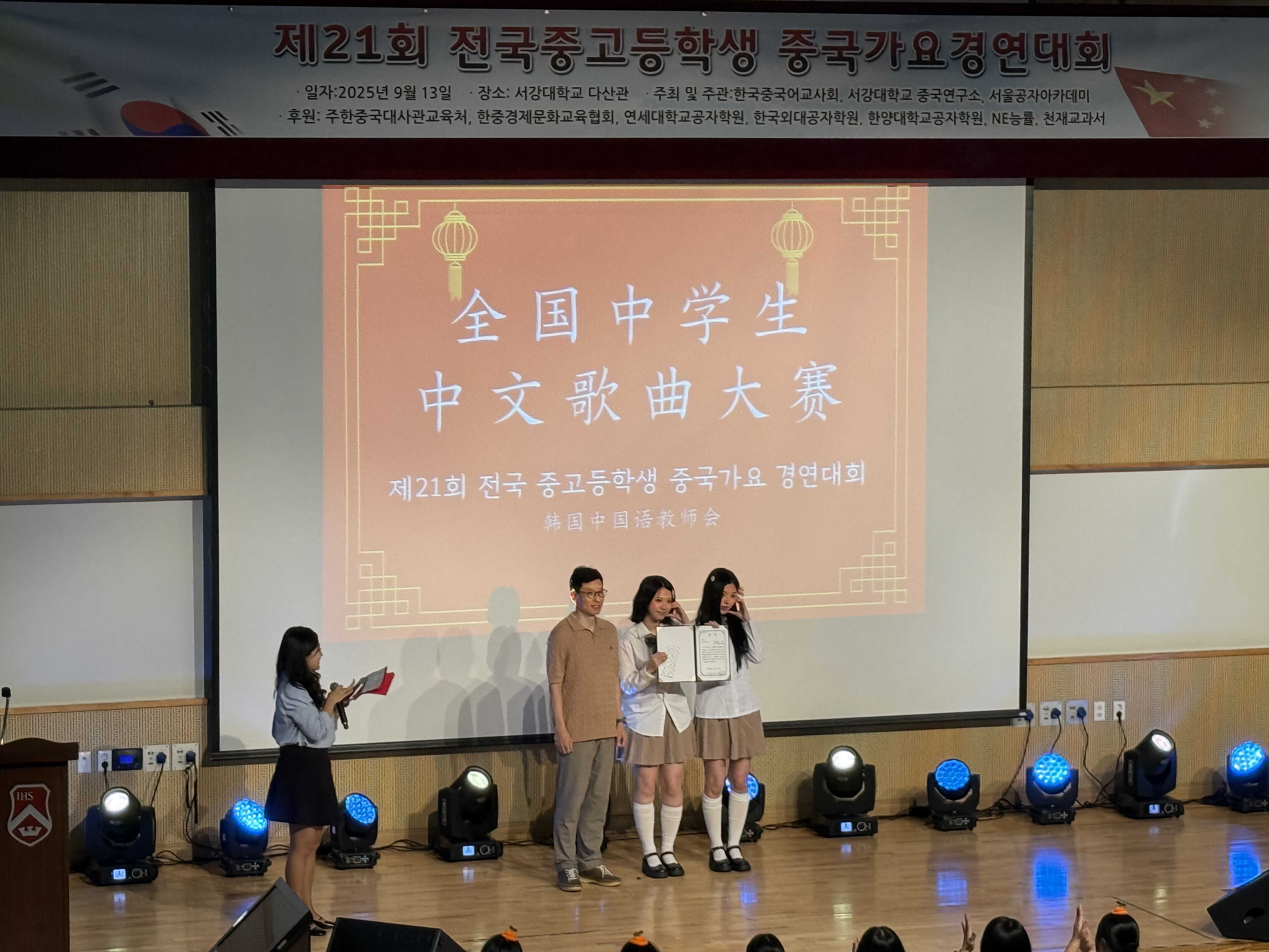 人民網(wǎng)首爾9月14日電 (記者莽九晨)13日,由韓國中國語教師會、首爾孔子學院和西江大學中國研究所共同舉辦的“第21屆全國中學生中文歌曲大賽”在韓國西江大學舉行。
