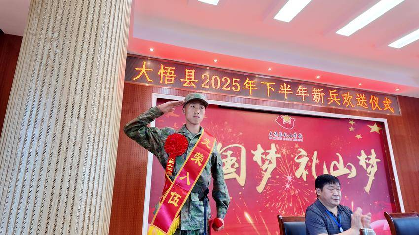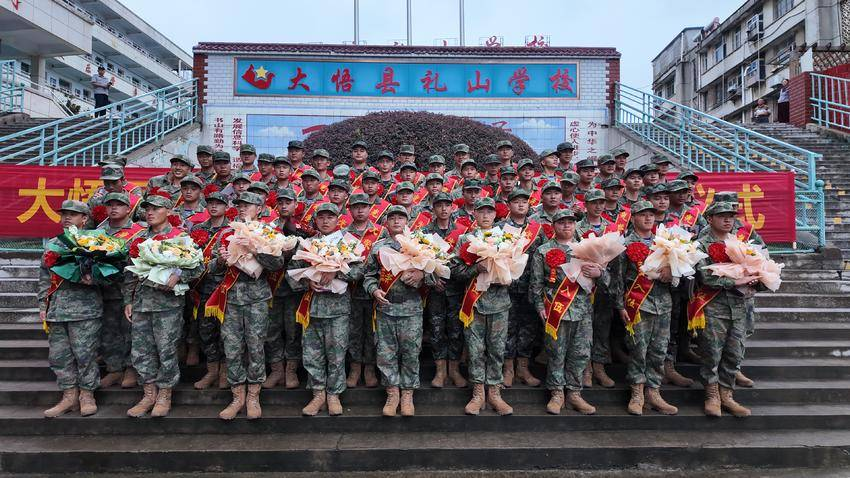 儀式在莊嚴的中華人民共和國國歌中拉開帷幕,禮山學校的學生代表向新兵送上鮮花,致敬最可愛的人,也為孩子們上了一堂最生動的國防教育課。工作人員為每位新兵贈送紅色書籍《大悟紅色記憶》,希望新兵在軍營中傳承大別山革命精神,賡續(xù)紅色血脈。隨后,全體新兵與家人們合影留念,一張張青春的臉龐、一個個堅定的眼神,定格成此刻最動人的畫面。