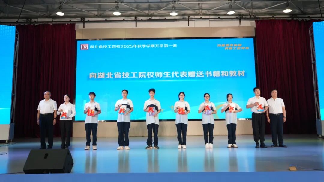 活動(dòng)儀式上,中國人力資源和社會保障出版集團(tuán)向湖北省技工院校贈(zèng)送了“開學(xué)第一課”書籍和“技能照亮前程”培訓(xùn)行動(dòng)規(guī)劃教材。