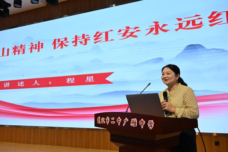 活動(dòng)在莊嚴(yán)肅穆的氛圍中拉開帷幕。第十四屆全國(guó)人大代表、黃麻起義和鄂豫皖蘇區(qū)紀(jì)念園游客接待中心副主任程星同志帶來專題宣講。結(jié)合十七年深耕紅色文化的實(shí)踐,程星以豐富史料為基、鮮活案例為引,系統(tǒng)解讀習(xí)近平總書記關(guān)于大別山精神的重要論述,深刻闡釋“堅(jiān)守信念鑄忠魂、緊跟黨走踐初心、顧全大局顯擔(dān)當(dāng)、團(tuán)結(jié)奮斗創(chuàng)偉業(yè)、勇當(dāng)前鋒爭(zhēng)先鋒、不勝不休礪志氣”的精神內(nèi)核,贏得師生陣陣掌聲。