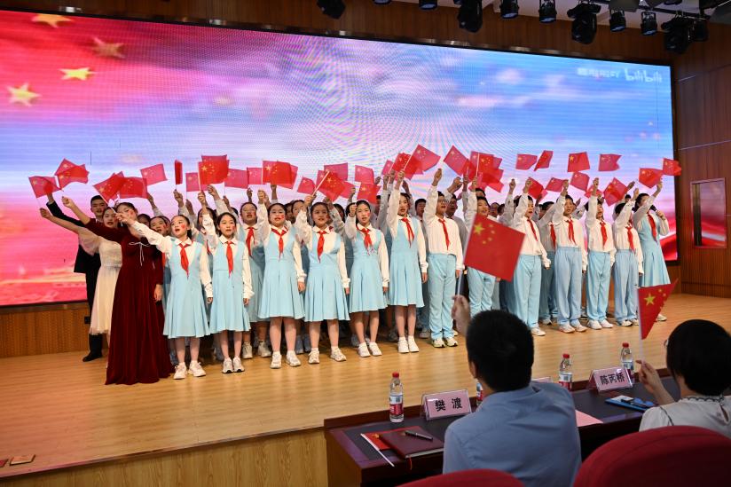 “祖國(guó)啊,祖國(guó),我深深地愛著我的祖國(guó)!”,二中廣雅中學(xué)的師生帶來的沉浸式歌舞朗誦《歌唱祖國(guó)》,將活動(dòng)推向高潮,他們用少年之聲與歷史回響隔空對(duì)話,點(diǎn)燃全場(chǎng)愛國(guó)熱情。