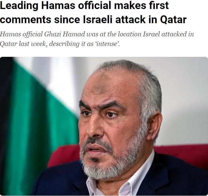 中新網(wǎng)9月18日電 據(jù)法新社及卡塔爾半島電視臺(tái)報(bào)道,當(dāng)?shù)貢r(shí)間9月17日,巴勒斯坦伊斯蘭抵抗運(yùn)動(dòng)(哈馬斯)高級(jí)官員加齊·哈馬德接受卡塔爾半島電視臺(tái)連線采訪,這是以色列9月9日襲擊卡塔爾首都多哈以來(lái),他首次公開(kāi)露面。