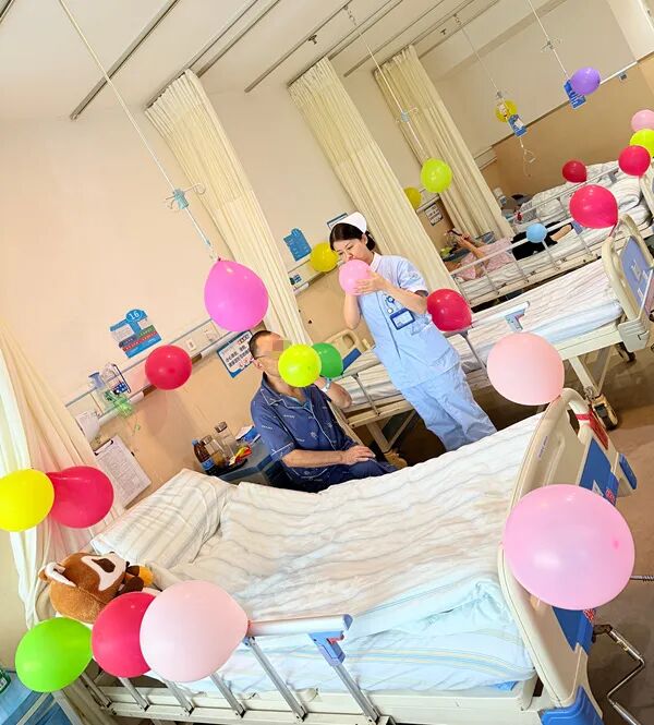 跟著這個(gè)方法練習(xí),楊叔叔的進(jìn)步肉眼可見:從一開始只能吹鼓小半只氣球,到后來能連續(xù)吹完兩三只;從吹氣球時(shí)會(huì)忍不住咳嗽,到胸口的緊繃感越來越輕,甚至能自己繞著病房走兩圈。如今,走進(jìn)楊叔叔的病房,粉、紫、綠、紅的氣球隨處可見,成了病房里最亮眼的裝飾?!澳憧矗@都是我這幾天吹的,每個(gè)護(hù)士進(jìn)來都會(huì)說好看,隔壁床病友也覺得好看!” 楊叔叔說起這些氣球,語(yǔ)氣里滿是自豪。