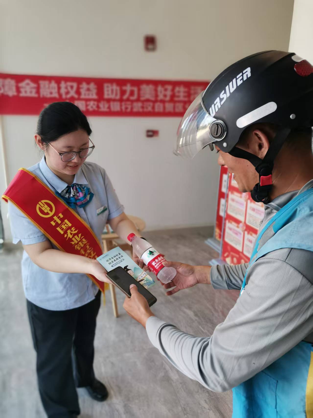 銀行工作人員圍繞個(gè)人信息保護(hù)、借貸風(fēng)險(xiǎn)防范、理財(cái)產(chǎn)品選購、電信網(wǎng)絡(luò)詐騙識(shí)別等核心消保內(nèi)容,結(jié)合典型案例與宣傳折頁,針對市民關(guān)心的“如何辨別虛假金融廣告”“怎樣防范銀行卡盜刷”“選購理財(cái)如何匹配自身風(fēng)險(xiǎn)”等問題逐一細(xì)致答疑。同時(shí),工作人員還貼心為市民送上冰鎮(zhèn)礦泉水,讓專業(yè)消保知識(shí)傳遞與暖心服務(wù)同步到位。