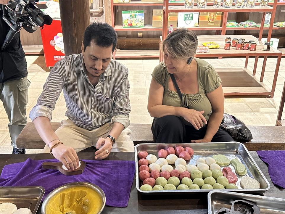 體驗(yàn)了制作工序后,費(fèi)薩爾·馬利克興奮地說:“這是我第一次見到這樣的制作工藝,讓我感到非常驚訝!做好的大米粑粑再加上一款口味獨(dú)特的辣醬,味道非常值得嘗試?!?/p>