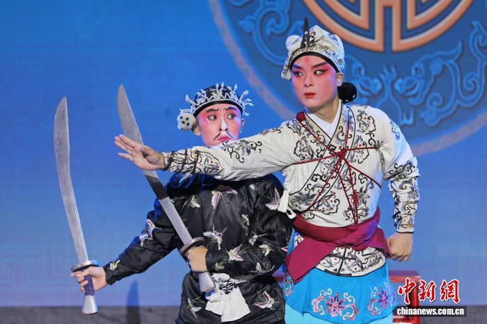 9月23日晚,浙江婺劇團(tuán)雅加達(dá)專場(chǎng)上演。圖為折子戲《三岔口》。中新社記者 李志全 攝