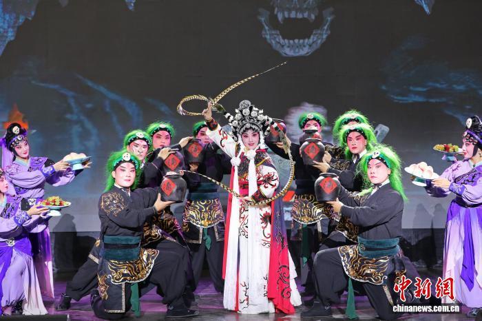 9月23日晚,浙江婺劇團(tuán)雅加達(dá)專場(chǎng)上演。圖為經(jīng)典大戲《三打白骨精》。中新社記者 李志全 攝