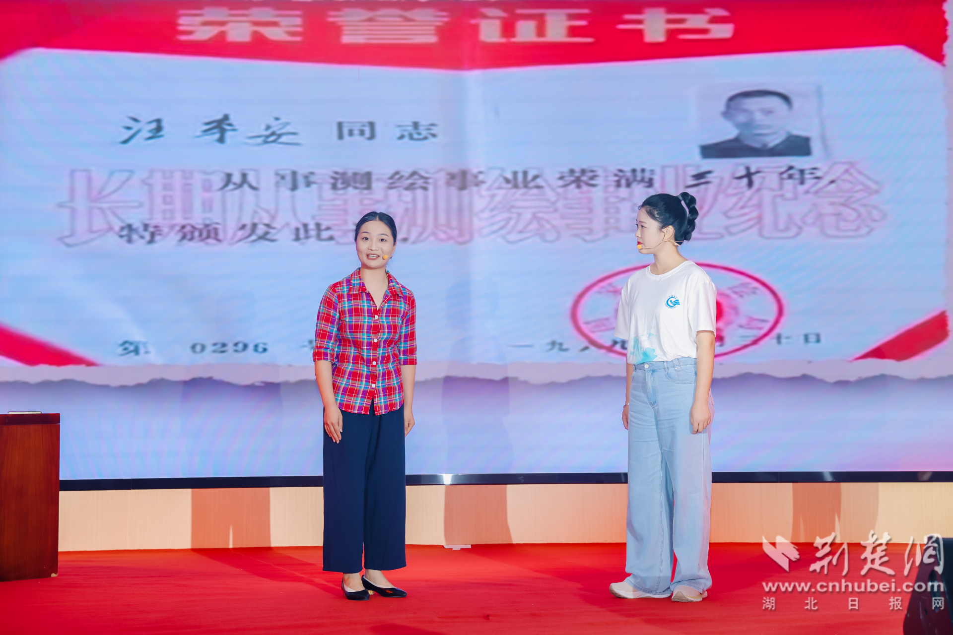 音樂黨課以毛澤東詩詞名句為脈絡(luò),在《江河萬古流》的旋律中拉開序幕,分為三個篇章展開。在第一篇章《江湖安瀾篇·高峽出平湖》中,天門市水文局講述了祖孫三代74年扎根基層“把脈江湖”的故事;宜昌市水文局通過情景劇展現(xiàn)了從傳統(tǒng)測量到無人機三維測繪、遠程雷達波在線監(jiān)測的水文技術(shù)變遷。展現(xiàn)了百年水文發(fā)展巨變,水利建設(shè)成果豐碩。