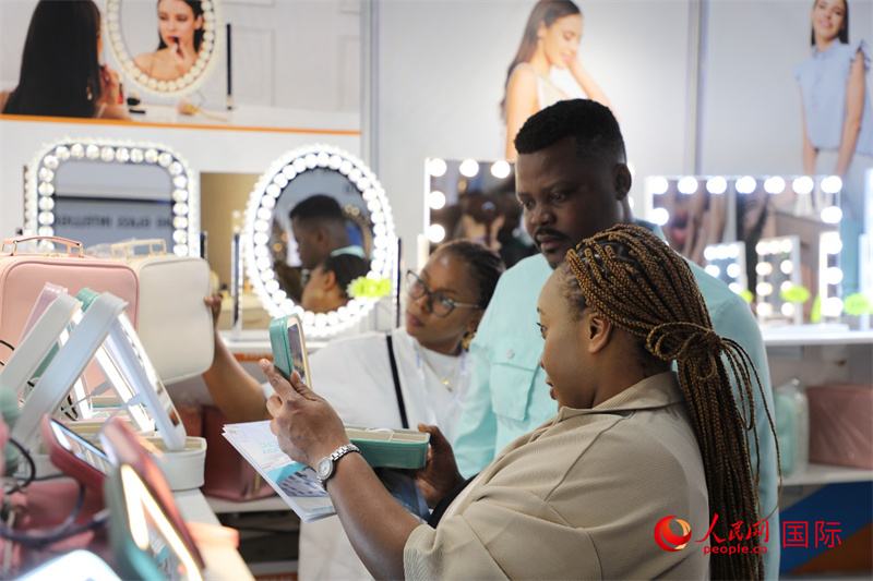 在第九屆中南貿(mào)易博覽會上,參觀者在體驗中國化妝鏡產(chǎn)品。人民網(wǎng)記者 戴楷然攝