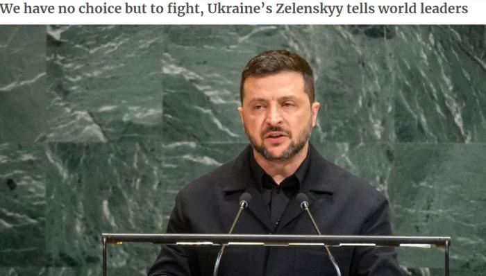 據(jù)聯(lián)合國(guó)官網(wǎng)發(fā)布的畫(huà)面,澤連斯基演講時(shí)換下了往常的套頭衫,選擇了更正式的黑色服裝。