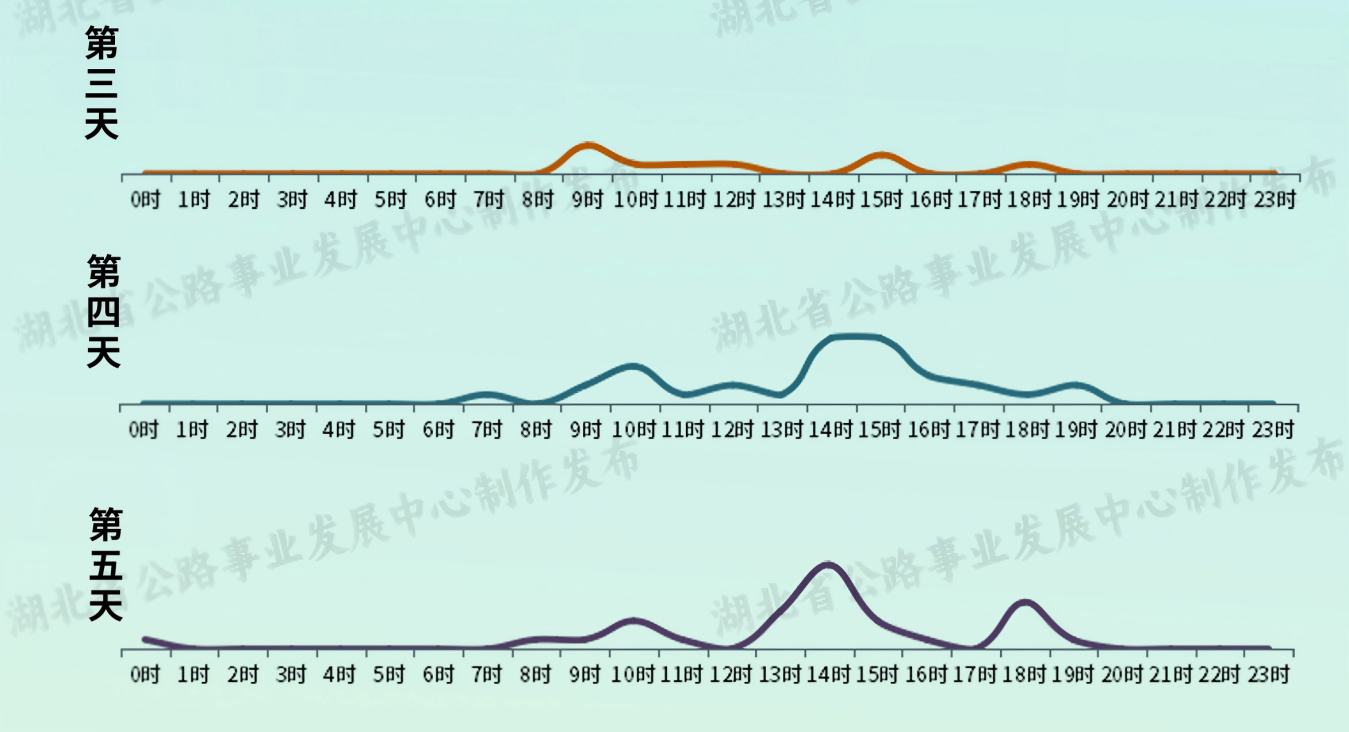 9月30日(假期前1天),部分公眾選擇提前出行,路網(wǎng)流量提前進(jìn)入高位,預(yù)計(jì)16時(shí)起車流量將逐漸增長(zhǎng),以武漢及各市州為中心向周邊縣市發(fā)散。
