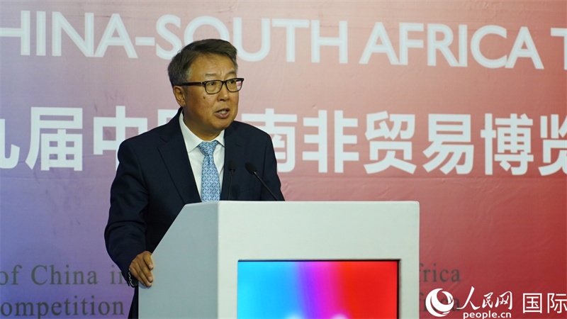人民網(wǎng)約翰內(nèi)斯堡9月24日電 (劉暢) 9月23日,中國(guó)駐南非使館與南非貿(mào)工部在約翰內(nèi)斯堡加拉格爾會(huì)展中心聯(lián)合舉辦南非—中國(guó)貿(mào)易投資促進(jìn)大會(huì)暨第九屆中國(guó)—南非貿(mào)易博覽會(huì)開(kāi)幕式。中南兩國(guó)企業(yè)、商協(xié)會(huì)和政府部門代表共約600人參會(huì)。